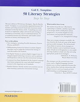The new edition of 50 Literacy Strategies: Step by Step by Gail E. Tompkins is a conveniently organized resource for all elementary and middle school teachers, providing research-based and classroom-tested strategies to develop literacy skills. Everything you need to know to implement, adapt, and enrich each strategy is included in a consistent, easy-to-understand format.
