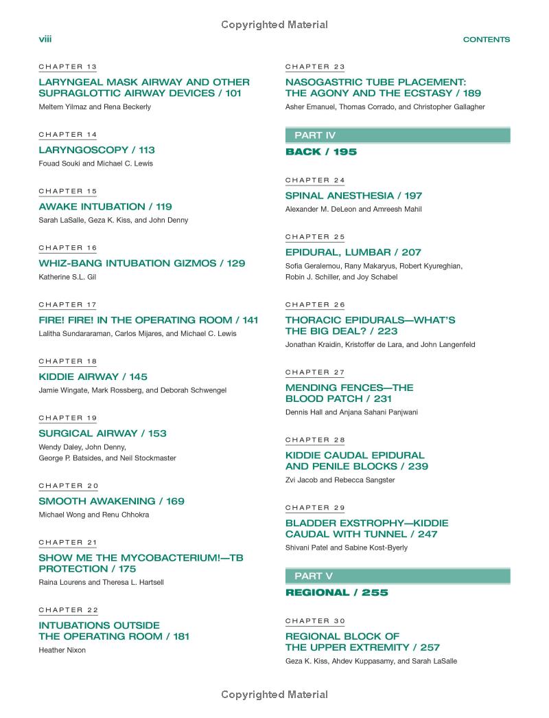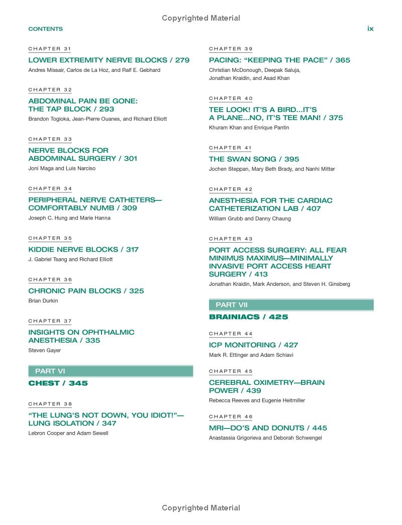 - Amusing insights you won’t get anywhere else with chapters that include:The Mask of Zorro: Mask Ventilation;Whiz-Bang Intubation Gizmos;PICC Lines – Just Really, Really Long IVs;Goodnight, Sleep Tight: Setup and Mask Induction for Pediatric Patients;The Lung’s Not Down, You Idiot! – Lung Isolation;Thoracic Epidurals―What’s the Big Deal?;Stand By Me: The Femoral Arterial Line