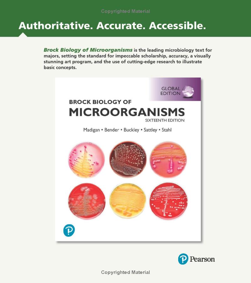 Brock Biology of Microorganisms setsthe standard for accuracy, impeccable scholarship, a visually stunning art program,and the use of cutting-edge research to illustrate basic concepts. The textguides students through the six major themes of microbiology ― Evolution, CellStructure and Function, Metabolic Pathways, Information Flow and Genetics,Microbial Systems, and the Impact of Microorganisms ― as outlined by theAmerican Society for Microbiology Conference on Undergraduate Education(ASMCUE). This robust and modern approach takes students through the genomicsrevolution and “omics” maze that has transformed microbiology and sharespowerful tools that microbiologists use to probe deeper and further into themicrobial world than ever before.