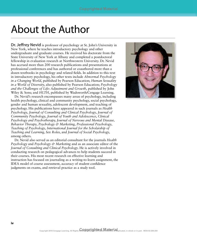 introductory text makes the study of psychology interesting while providing solid grounding in the subject’s knowledge base to help you succeed in the course. With built-in learning aids, ESSENTIALS OF PSYCHOLOGY: CONCEPTS AND APPLICATIONS, 5th Edition features an effective learning system that helps you absorb and remember important information. In MindTap, the text’s online learning experience, you’ll fine author podcasts and videos that you can access from your smart phone, direct links to TEDTalks, interactive learning activities, cool apps, and more.