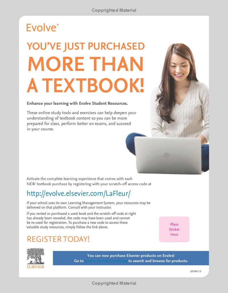 • NEW! Elsevier Adaptive Quizzing (EAQ) is now available for separate purchase–Elsevier Adaptive Quizzing is a highly effective, formative evaluation tool that strengthens your knowledge and confidence with high-quality practice questions. Through personalized quizzing, you and your instructors can identify weak topic areas and develop simple strategies to improve your results