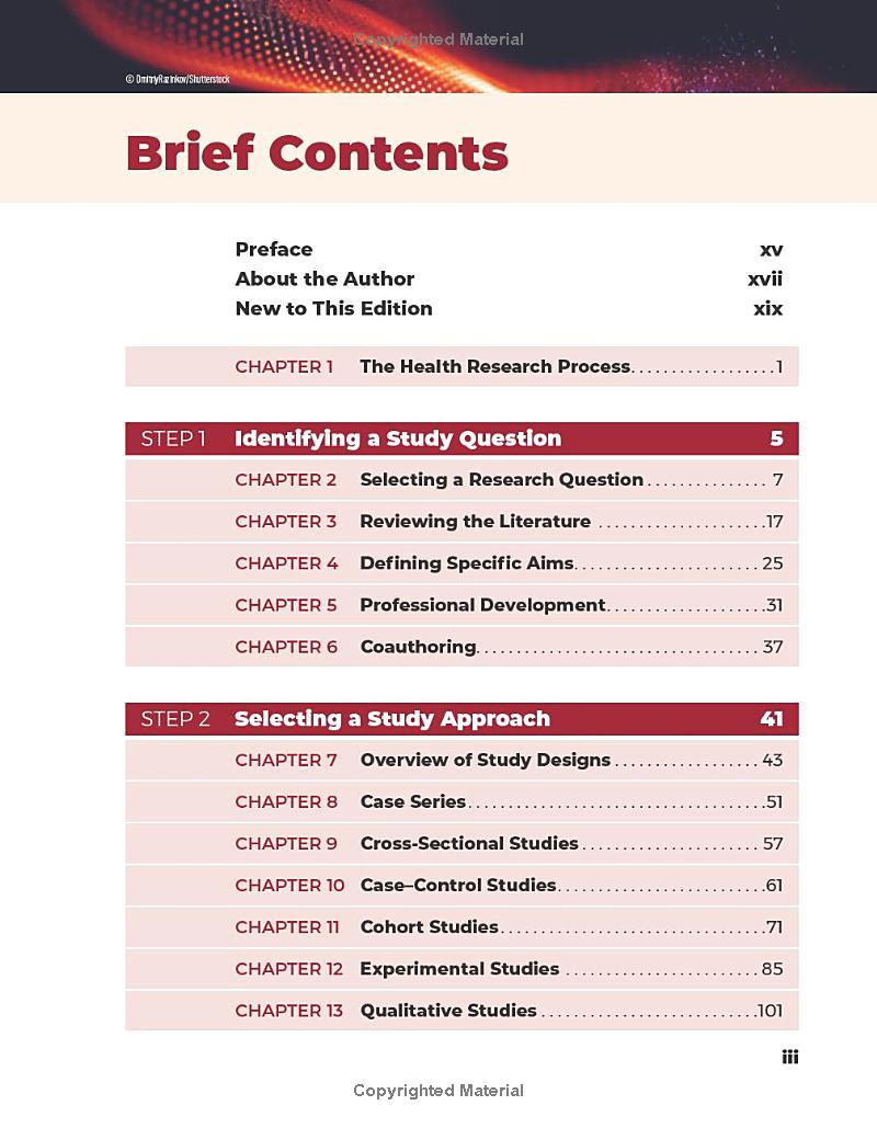 Designed to empower new investigators to conduct their own original research projects, the third edition of Introduction to Health Research Methods: A Practical Guide leads the reader step-by-step in performing quantitative and qualitative research in medicine, public health, and other clinical and population health fields. Organized in five sections, the text covers the entire research process from formulating a study question and selecting a study approach to collecting and analyzing data and then disseminating the findings. Chapters about methods for primary studies (collecting new data), secondary analyses (analyzing existing data), and tertiary studies (conducting literature reviews and meta-analyses) provide comprehensive coverage of the scope of health research. By breaking the research process down into a series of achievable steps, Introduction to Health Research Methods shows students and early career scholars how they can contribute to improving the health of individuals and communities through research. Expanded coverage of qualitative research methods, including new chapters on qualitative study design, data collection, and data analysis. Additional glossary terms that clarify key terminology for all stages of the research process and a diversity of study approaches. Enhanced explanations of how to select and implement quantitative and qualitative research and analysis methodologies. New and updated coverage of topics such as framing research questions, developing testable hypotheses, defining specific aims, responsibly conducting research, selecting study designs, minimizing bias, applying theoretical paradigms, ensuring rigor and reproducibility, conducting quality assessment, managing grants, and more. Each new print copy includes Navigate 2 eBook Access to read your digital textbook online or offline, on computers, tablets, and mobile devices. Want to learn more? Watch Kathryn Jacobsen’s webinar on Teaching Qualitative and Quantitative Research Methods: How to Structure Student Learning and Assessment Graduate, undergraduate, and professional courses in Research Methods, Qualitative Research Design and Analysis, Study Design, Research Design and Methods, Introduction to Research and/or more across the health disciplines. © 2021 | 404 pages