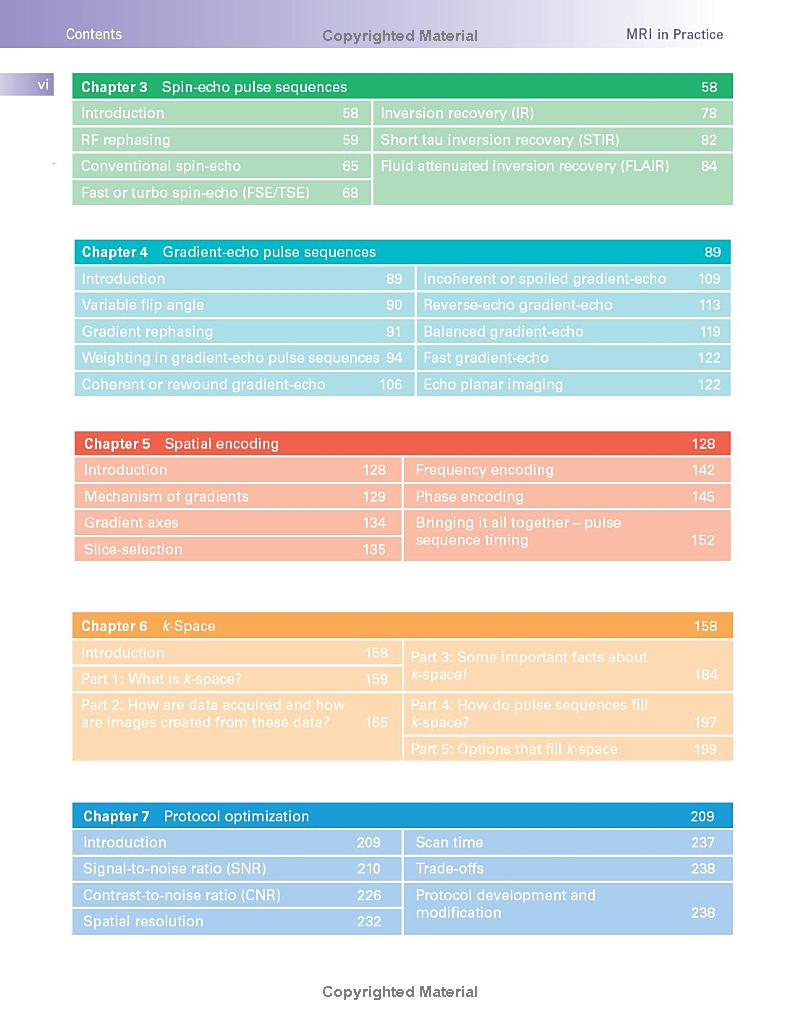 MRI in Practice continues to be the number one reference book and study guide for the registry review examination for MRI offered by the American Registry for Radiologic Technologists (ARRT).  This latest edition offers in-depth chapters covering all core areas, including: basic principles, image weighting and contrast, spin and gradient echo pulse sequences, spatial encoding, k-space, protocol optimization, artefacts, instrumentation, and MRI safety.