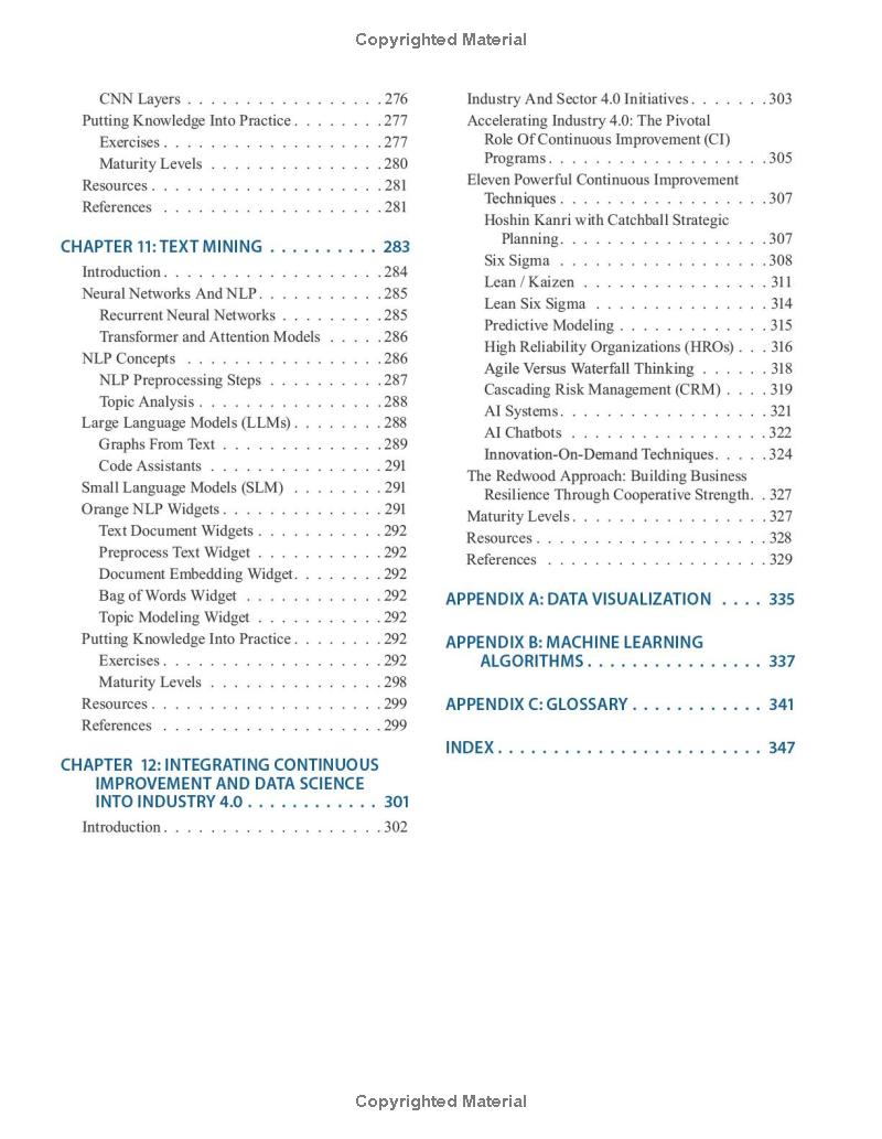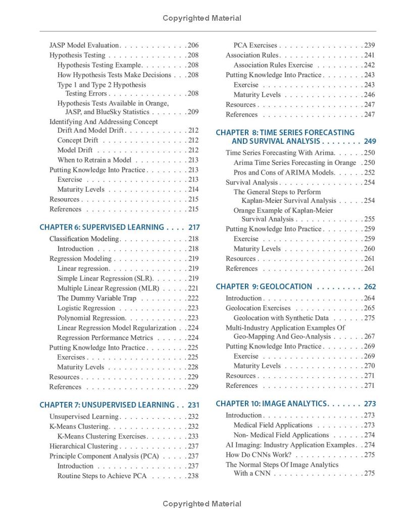 No Code Data Science is a revolutionary book that democratizes the application of predictive analytics for organizations of all sizes. This first-of-its-kind textbook book is designed to empower readers with the ability to leverage advanced analytics, machine learning, and AI without using a programming language, such as Python or R. It’s a comprehensive guide to no-code data science (NCDS) that applies free, no-code, and open-source software with Orange visual programming software, JASP, and BlueSky Statistics. A no-shortcuts approach to ML and AI is applied to maximize the accuracy and application potential of predictive models. The NCDS approach is akin to constructing predictive models with pre-made LEGO bricks (visual programming) versus tediously molding shapes from clay (manual coding). A practical how-to approach to predictive modeling is offered while insisting on the rigor of our disciplined NCDS process. Hands-on data exercises are included in the first eleven chapters. QR code links to educational videos are included in most chapters. Data science background is first explored, discussing basic definitions and data scientist skill sets. This is followed by chapters on data preparation, wrangling, and data visualization. Predictive analytics is covered in chapters on machine learning models and model evaluation. Both supervised and unsupervised learning are included in the discourse. Time series forecasting, survival analysis, and geolocation are covered in separate chapters. Artificial intelligence is featured in chapters on image analysis and text mining. Lastly, the potential impact of machine learning and artificial intelligence on Industry 4.0 is covered in the last chapter. A pathway for statisticians, Lean Six Sigma practitioners, and other professionals is offered to learn predictive modeling techniques to enable organizations to successfully pursue Industry 4.0 goals.