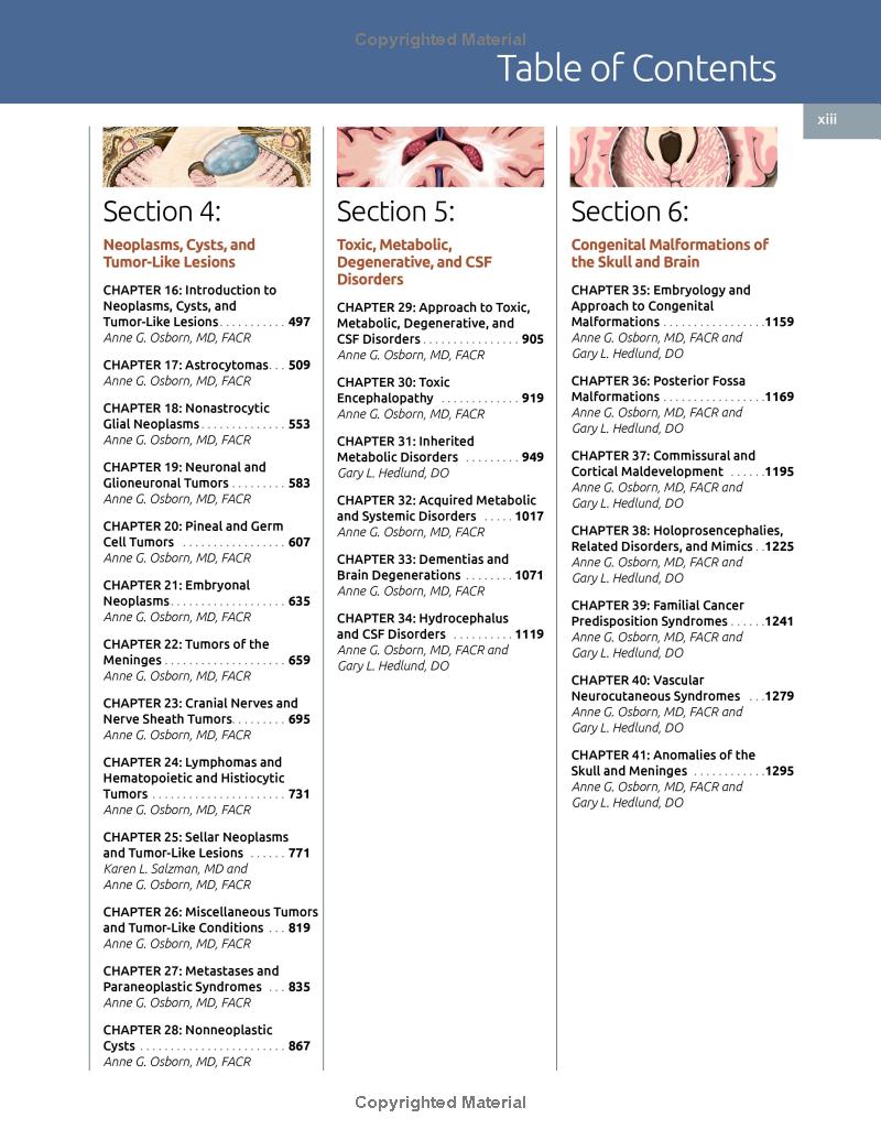 - Begins with emergent topics such as trauma, nontraumatic hemorrhage, stroke, and vascular lesions, followed by infections, demyelinating and inflammatory diseases, neoplasms, toxic-metabolic-degenerative disorders, and congenital brain malformations