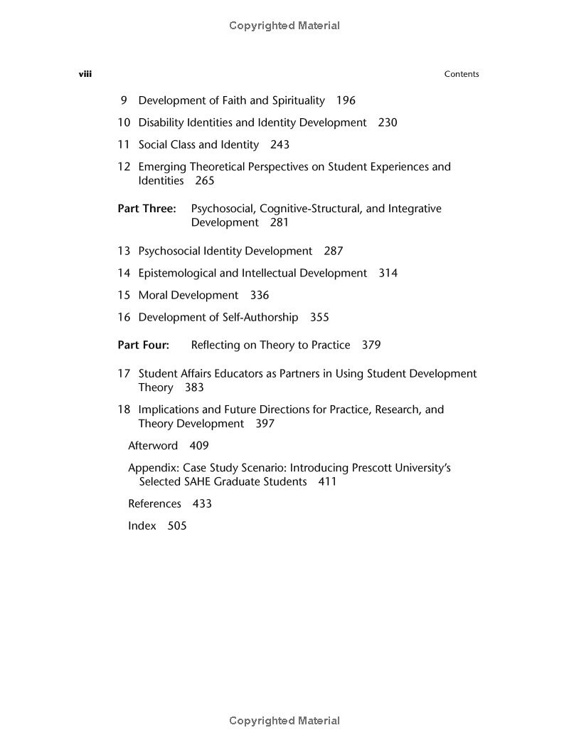 “This third edition of Student Development in College beautifully presents the theoretical terrain of student development by honoring the foundational theories upon which the field was developed and foregrounding newer theories with brand new content and fresh perspectives. The result is a text that is comprehensive, sophisticated, and accessible and one that is attuned to the contemporary realities of the complexities of student development.”