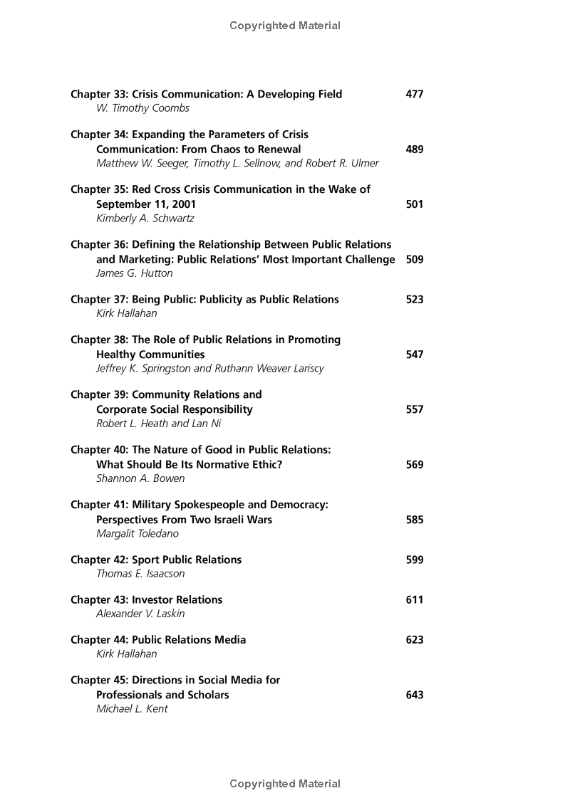 Reflecting advances in theory, research, and application in the discipline since the publication of the Handbook of Public Relations in 2001, this new volume is global in scope and unmatched in its coverage of both academic research and professional best practice.