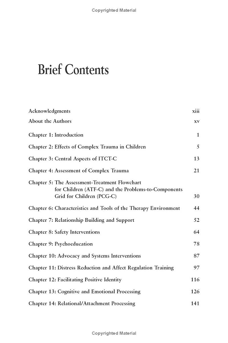 One of the few books on the treatment of psychological trauma in children that provides specific, in-depth individual, group, and family therapy interventions for complex psychological trauma, this practical book focuses on the treatment of 6-12 year-old children and their family members. The authors employ an evidence-based, yet flexible and individualized treatment model, Integrative Treatment of Complex Trauma for Children (ITCT-C), as they address the use of play therapy and other expressive approaches, attachment processing, multi-target titrated exposure, mindfulness techniques, psychoeducation, and affect regulation skill development, as well as interventions with family/caretaker and community systems. The authors emphasize a culturally sensitive and empowering perspective, one that addresses the effects of social marginalization and supports not only recovery, but also posttraumatic growth. Clinical examples and specific tools, such as the Assessment Treatment Flowchart (ATF-C), illustrate how assessment can be used to guide individualized and developmentally-appropriate interventions.